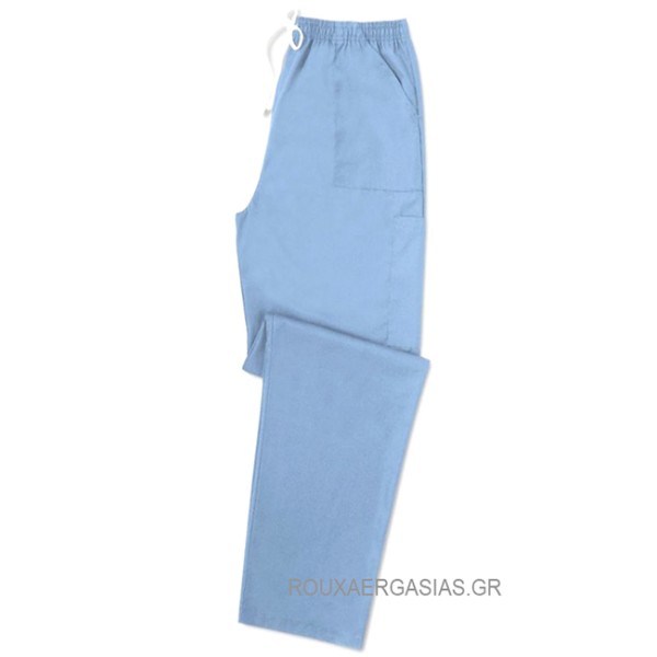 Παντελόνι Εργασίας. Αντοχή στα πολλαπλά πλυσίματα. Εύκολο ρούχο στο σιδέρωμα. Έχει λάστιχο καί κορδόνι στη μέση. Με δύο τσέπες εμπρός καί μία Μικρή στό πλάϊ. Άνεση στην κίνηση. Ενισχυμένες ραφές. Πονταρισιά στις τσέπες για μεγαλύτερη αντοχή.